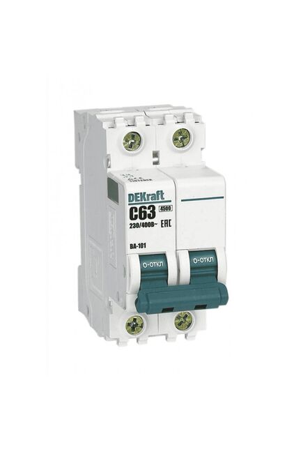 Надёжная защита электросети вашего дома или коммерческого объекта — гарант безопасного и стабильного энергоснабжения. Двухполюсный автоматический выключатель с номиналом 63 А (тип C), рассчитанный на ток короткого замыкания до 4,5 кА, обеспечивает своевременное отключение сети при перегрузках и коротких замыканиях, предотвращая повреждение оборудования и электропроводки.