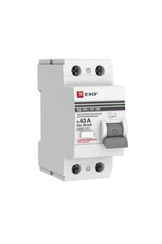 2 полюса, номинальный ток 63А, дифференциальный ток 30мА, защита от перегрузок и утечек, монтаж на DIN-рейку, для бытового и коммерческого использования.