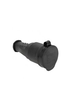 Влагозащищённая розетка 16А с заземлением и защитной заглушкой для безопасного подключения техники на улице и в сложных условиях.