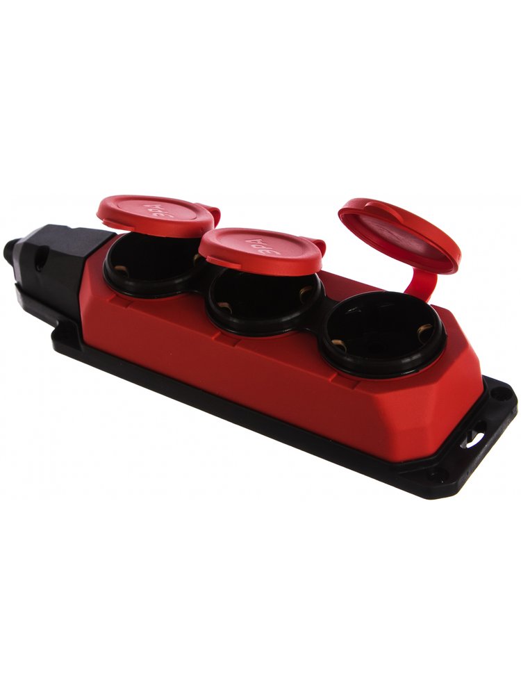 Универсальное решение для электроснабжения на строительных площадках, в мастерских и гаражах — прочная розетка на три гнезда с заземлением и защитными крышками обеспечит надёжное подключение трёх устройств одновременно, даже во влажных или пыльных условиях.