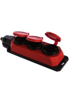Три розетки с заземлением, корпус из каучука, IP54, для подключения в помещении и на улице, выдерживает ток до 16А.