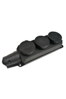 3 розетки с заземлением, каучуковый корпус, защита IP44, крышки и крепление — для надежного подключения в сложных условиях.