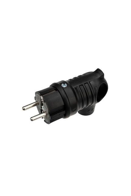 Надёжное решение для безопасного подключения электроприборов в сложных условиях – эргономичная угловая каучуковая вилка с кольцом и заземлением, подходящая для интенсивной эксплуатации на стройке, в мастерской и при работе на улице.