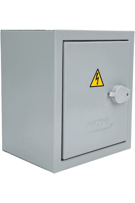 Компактный стальной щит IP54 для надёжной защиты электрооборудования от пыли и влаги, с монтажной панелью и удобным креплением.