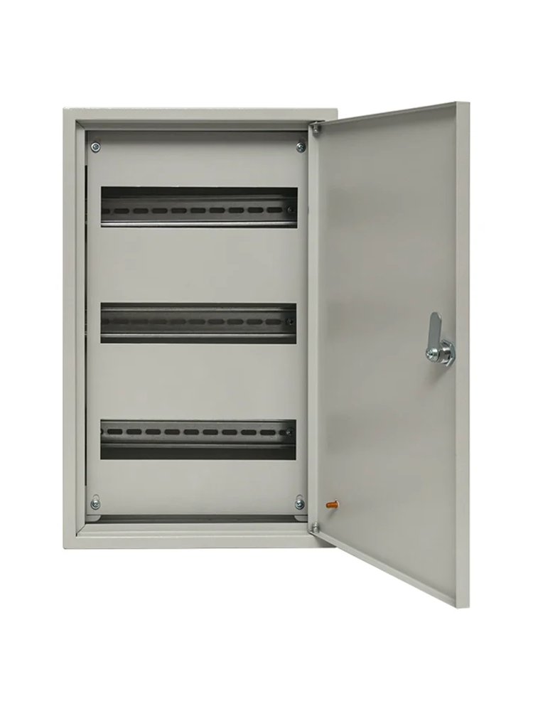 Металлический щит для 36 модулей, 480×300×120 мм, защита IP31, замок, порошковая окраска, подходит для квартир и офисов, удобен в монтаже.