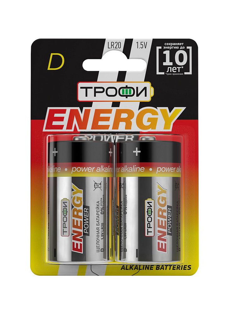 Батарейка Трофи LR20-2BL ENERGY POWER Alkaline блистер 2 (373/D) в Вяземский