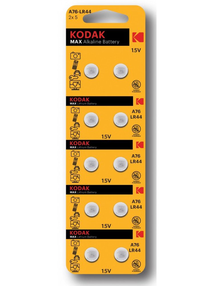 Часовые батарейки Kodak AG13 357 LR1154, LR44 KAG1310. Щелочные элементы питания широко применяются в наручных часах и другой малогабаритной электронике. Блистер 10 батареек Щелочные батарейки LR44 подходят для тесных приборов и измерителей — надежное питание, долгий срок службы, оптимальны для строительного оборудования.