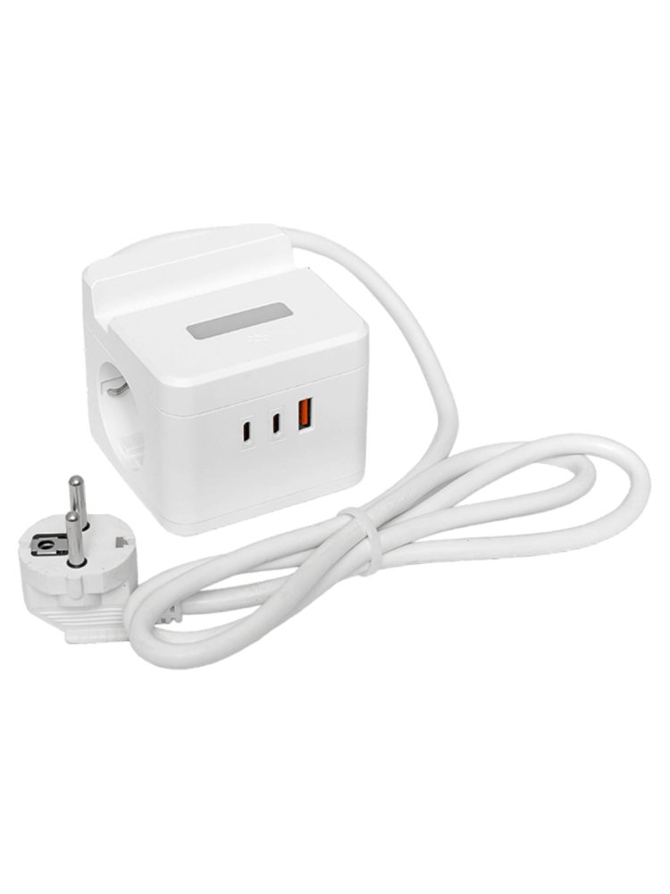 Удлинитель «Куб» 2 гнезда USB + 2 Type C с быстрой зарядкой, подставкой под телефон и ночником 1,3 метра 1 мм2 предназначен для подключения к электрической сети всех видов бытовой и офисной техники, для зарядки и питания устройств через порты USB, а также для подсветки помещений в качестве ночника. 2 розетки с заземлением, 1 USB, 2 Type-C, ночник и подставка. Удобство работы и зарядки ваших устройств. Длина шнура 1,3 метра.