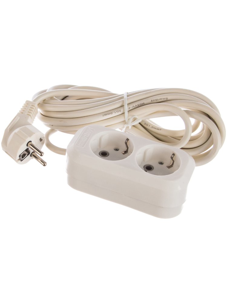 Номинальное напряжение: 250 В; Частота: 50 Гц; Номинальный ток: 16 А; Тип провода: ПВС 3x1,0мм2; Материал корпуса: АБС-пластик; Климатическое исполнение: УХЛ-3; Степень защиты от влаги и пыли: IP-20; Цвет: белый. Удлинитель 5м, 2 гнезда с заземлением, 16A, провод ПВС 3x1 мм² — идеален для подключения электроинструментов на стройке или в мастерской.