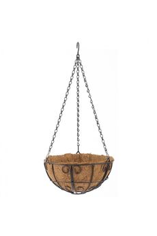 Подвесное кашпо диаметром 30 см с кокосовой вставкой, орнаментом и прочной цепью, идеально для уличных или домашних растений и цветов.