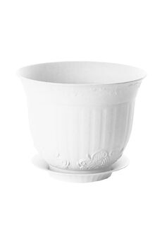 Белое пластиковое кашпо на 6,5 л для комнатных и уличных растений, стойкое к влаге и УФ, легко моется, универсальное.
