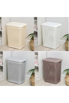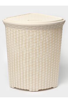 Размер (Д*Ш*В): 40*40*57 см Угловая корзина 60 л с крышкой, ротанг, прочный пластик, вентиляция, для белья и текстиля, компактное размещение, цвет слоновая кость.