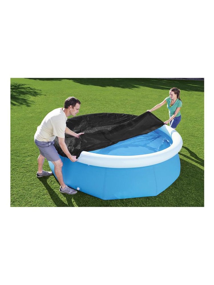 Идеальный аксессуар для поддержания чистоты воды в сезон — тент защищает бассейн от листвы, пыли и загрязнений, существенно облегчая уход за купелью на открытом воздухе. Подходит для любых надувных и каркасных моделей диаметром до 244 см, используется на даче, участке, при гостиницах и в детских лагерях.