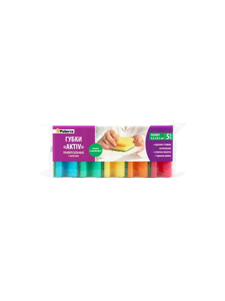 - Две рабочие поверхности: мягкая сторона бережно очищает деликатные материалы, абразивный слой эффективно удаляет стойкие загрязнения.