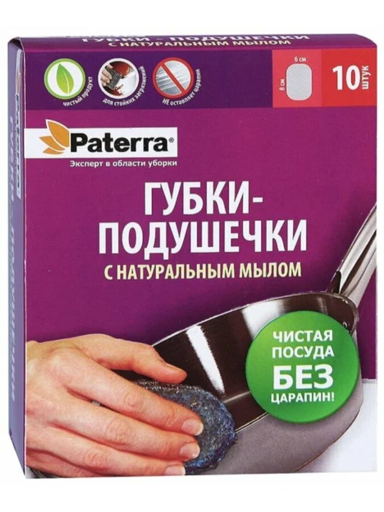 Губка-подушечки с натуральным мылом PATERRA металлические, 10шт в Вяземский