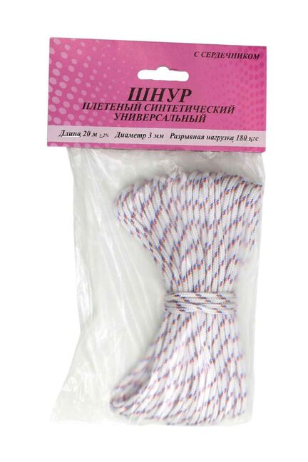 Прочный полиамидный шнур с сердечником 3 мм, 20 м, выдерживает до 230 кг, устойчив к влаге и износу, идеален для строительно-хозяйственных задач.