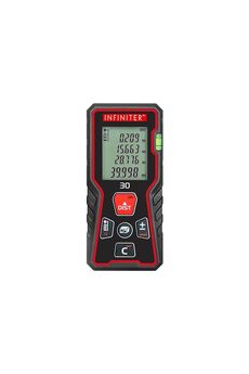Лазерный дальномер INFINITER 30 1-2-325 используется для измерения расстояний, длин, высот, проведения вычисления площадей и объемов измеряемых объектов, а также косвенных измерений с помощью теоремы Пифагора. Можно производить измерения как в помещении, так и на улице. Оснащен пузырьковым уровнем для получения наиболее верных результатов измерений. Данная модель имеет яркий дисплей и крупные цифры, которые прекрасно видно как в темноте, так и при свете. Для удобного использования предусмотрен небольшой вес и компактные размеры. Боковые части корпуса оснащены ребристой поверхностью, поэтому прибор не будет скользить в руке. Быстрые и точные замеры до 30 м, расчёт площади и объёма, компактность и простота – идеальное решение для ремонтных и строительных работ.