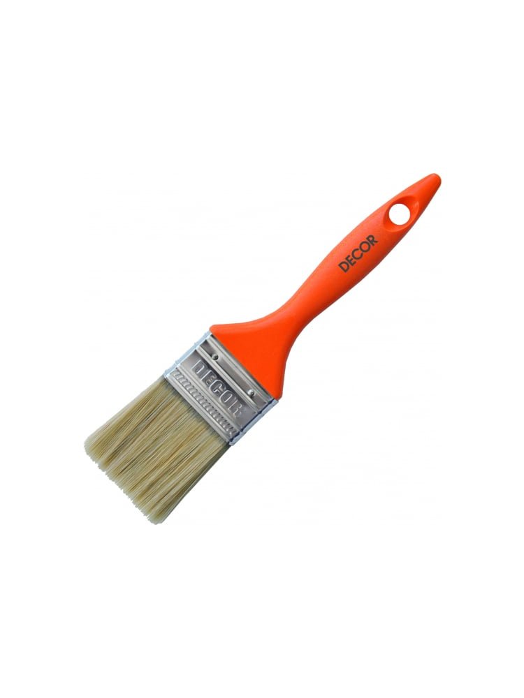 Эргономичная плоская кисть с натурально-искусственной светлой щетиной и удобной пластиковой ручкой — идеальный выбор для равномерного нанесения лакокрасочных материалов на любые ровные поверхности стен, потолков и мебели.
