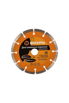 Диск алмазный отрезной сегментный Вихрь предназначен для угловых шлифовальных машин и резчиков. Применяется для сухого реза по бетону, кирпичу, граниту, камню, искусственному камню. В комплекте поставляется переходное кольцо с диаметра 22.2 мм на 20 мм. Алмазный сегментный диск 150х22,2 мм для сухой резки бетона и кирпича. Чистый срез, долговечность и быстрый результат для профессионалов и мастеров.
