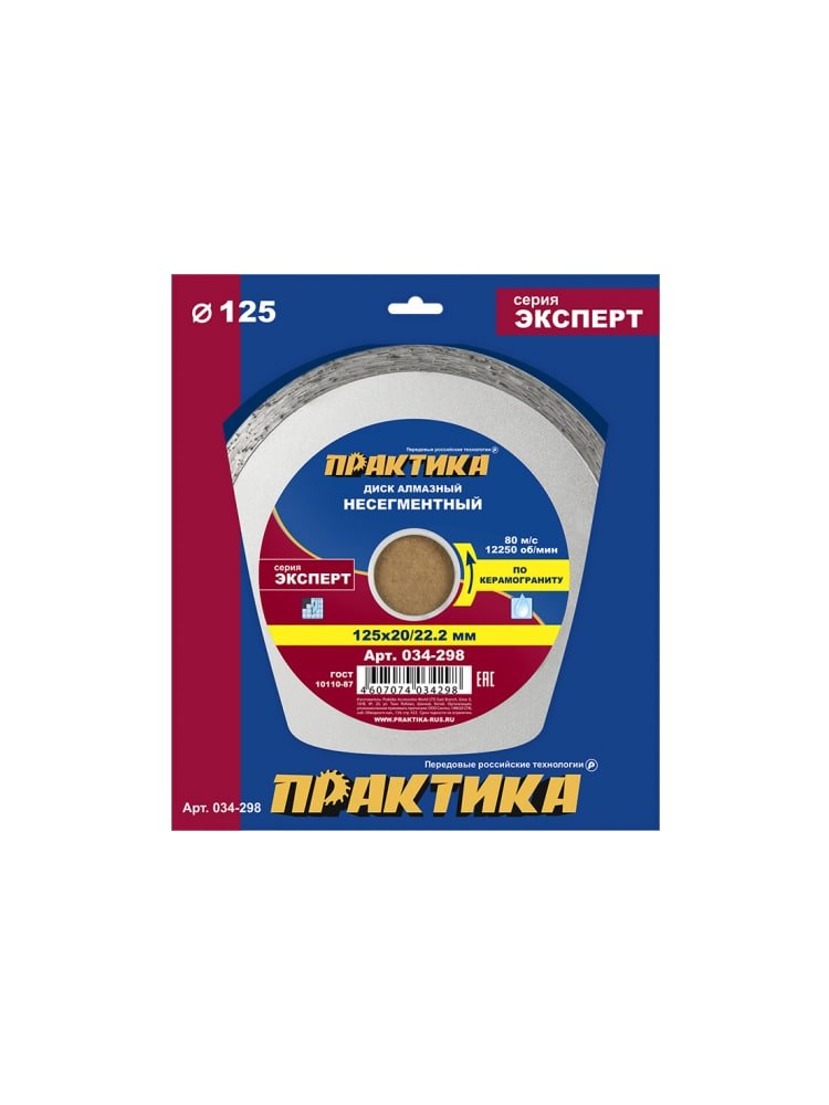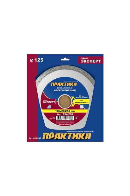Диск алмазный несегментный ПРАКТИКА "Эксперт-керамогранит" 125х20/22 мм в Вяземский