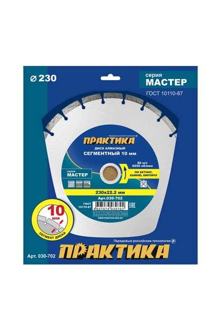 Диск алмазный сегментный ПРАКТИКА "Мастер" 230*22 мм в Вяземский