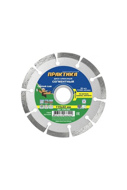 Диск алмазный сегментный ПРАКТИКА "Сделай сам" 115*22 мм в Вяземский