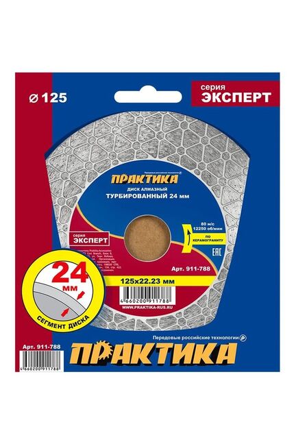 Диск алмазный турбированный ПРАКТИКА "Эксперт-керамогранит" 125*22 мм, сегмент 24мм, коробка в Вяземский