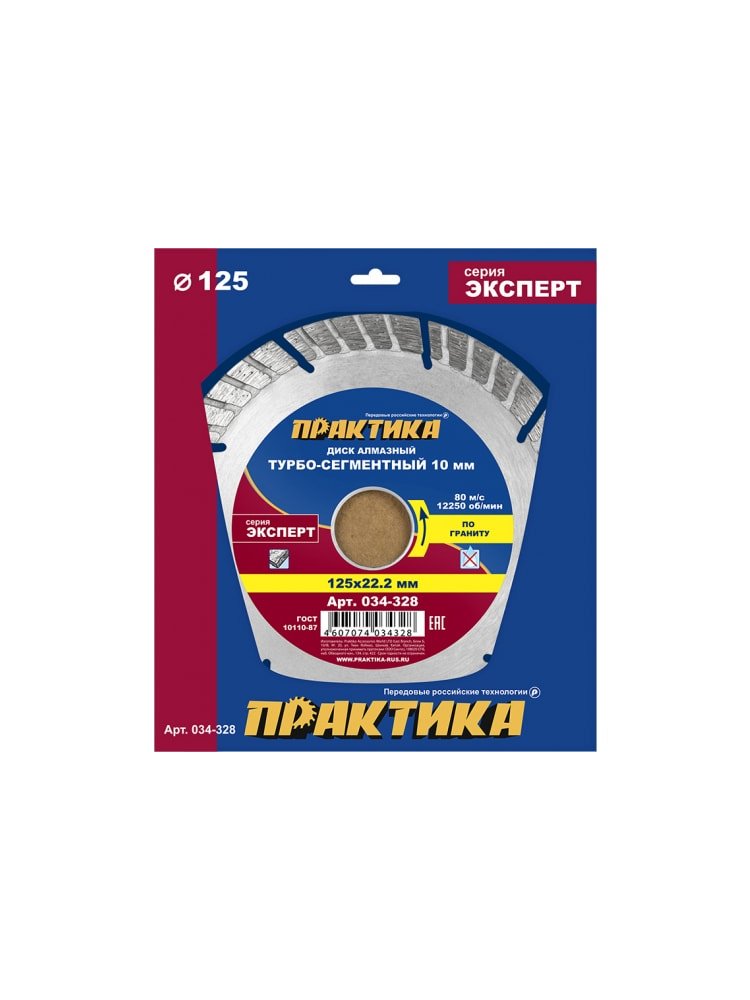 Диск алмазный турбосегментный ПРАКТИКА "Эксперт-гранит" 125*22 мм, сегмент 10 мм в Вяземский