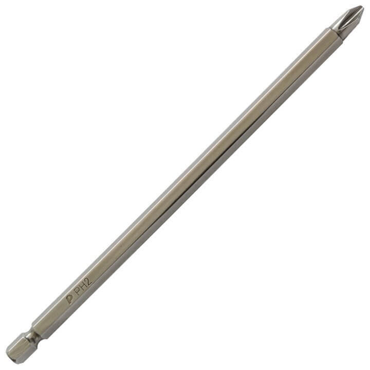 Длинная PH2-бита 150 мм из легированной стали для монтажа в труднодоступных местах, устойчивая к износу, совместима с шуруповертами.