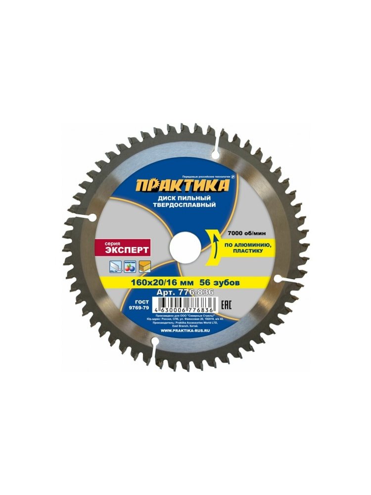 Диск пильный по алюминию ПРАКТИКА 160*20/16 мм, 56 зубов в Вяземский