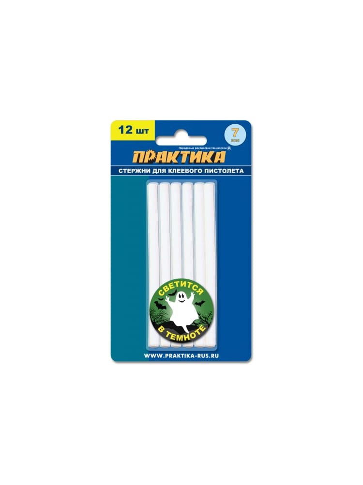 Клей для клеевого пистолета ПРАКТИКА белый, светящийся в темноте, 7x100 мм, 12шт