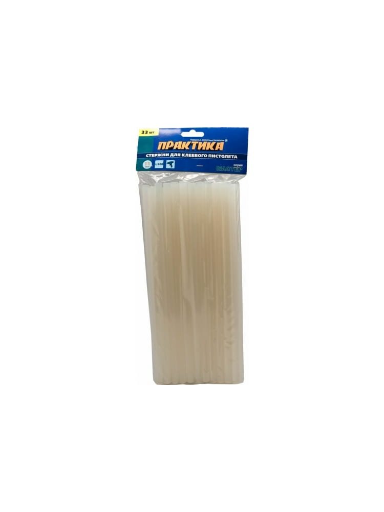 Клей для клеевого пистолета ПРАКТИКА 11*300 мм, белый, прозрачный, 33 шт