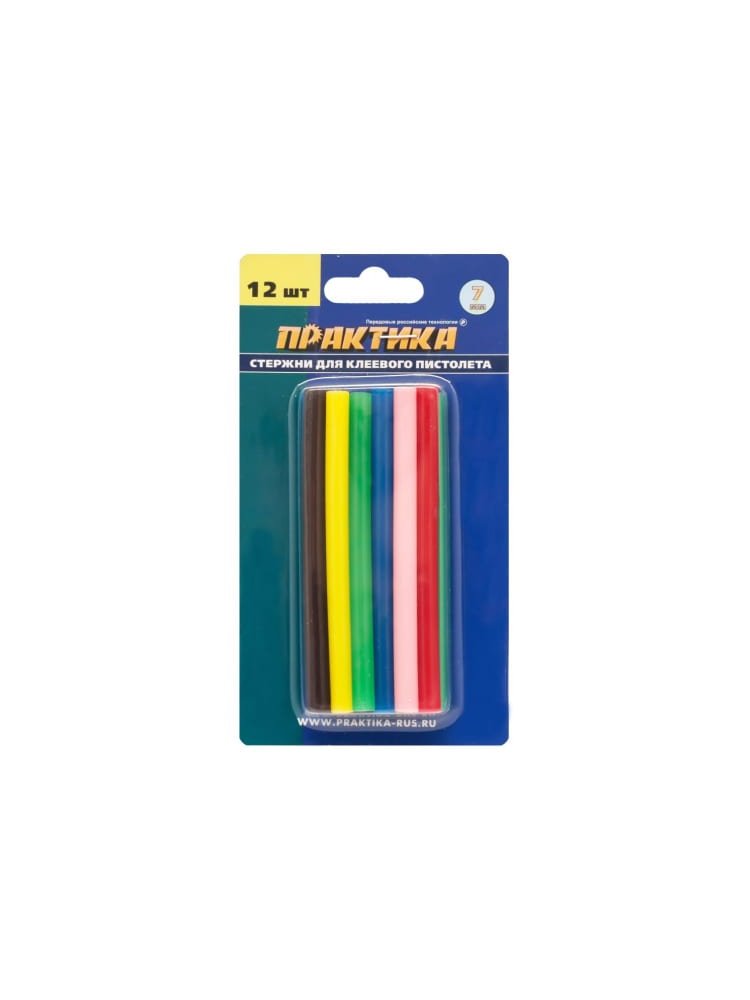 Клей для клеевого пистолета ПРАКТИКА цветной 7x100 мм, 12шт