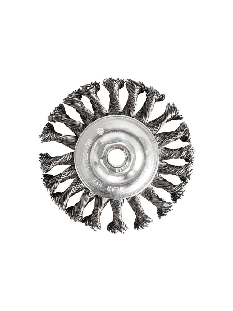За счет витого строения щетка быстро и эффективно очищает даже сложные загрязнения, не деформируется и сохраняет производительность при интенсивной эксплуатации. Инструмент отлично подходит для зачистки, полировки, удаления окалины, краски и ржавчины с металлических изделий, деталей и конструкций.