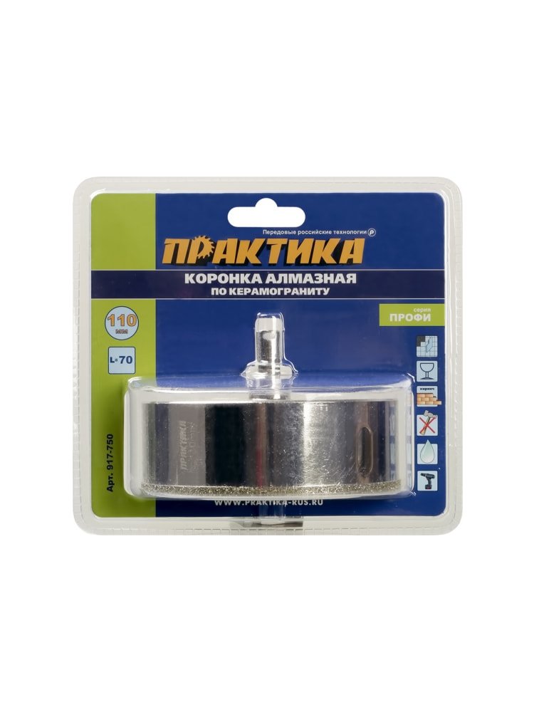 Коронка алмазная по керамограниту/керамике ПРАКТИКА "Профи" 110*70 мм, пилотное сверло в Вяземский