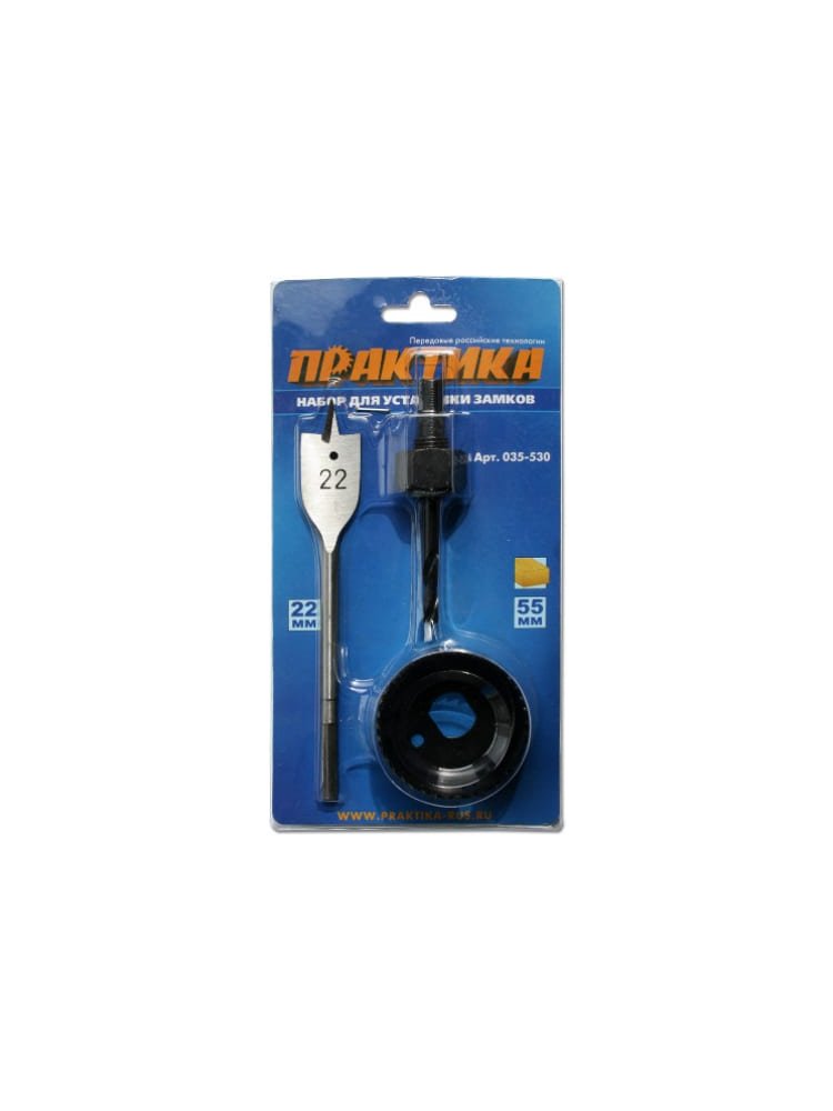 Набор для установки замков ПРАКТИКА коронка 55х20 мм, перовое сверло 22 мм в Вяземский