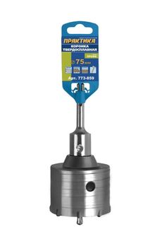 Твердосплавные коронки и держатели коронок для перфораторов SDS- plus и SDS- max. Серии "Мастер" и "Профи". Для быстрого ударного сверления в кирпиче и неармированном бетоне глухих отверстий под монтажные коробки перфораторами с патронами SDS-plus и SDS-max. При необходимости возможно сверление сквозных отверстий под сантехнические и вентиляционные трубы, периодически вынимая керн. В случае сверления в армированном бетоне используйте алмазную коронку в неударном режиме. Унифицированная резьба позволяет установить любой хвостовик на любую коронку в зависимости от имеющегося перфоратора и глубины отверстия, которое необходимо просверлить. Твердосплавные зубья, диаметр 75 мм, SDS-Plus, подходит для ударного сверления бетона, кирпича и камня, ресурс увеличен, ровное сверление.