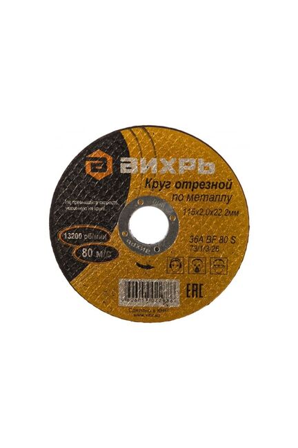 Круг отрезной Вихрь предназначен для угловой шлифовальной машины. Применяется для резки по металлу. Диск обладает высокой производительностью и большим ресурсом работы. Надёжный отрезной круг 115х2,0 мм для точной резки металла и стали, подходит для УШМ, долговечен, не перегревается, обеспечивает чистый рез.