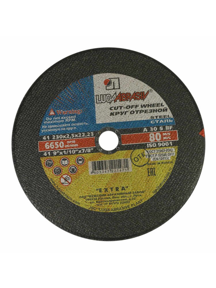 Круг отрезной по металлу и нержавеющей стали ЛУГА Extra размером 230*2,5*22 мм предназначен для высокоточной резки металлических заготовок и конструкций. Изготовлен из качественного абразивного материала на основе оксида алюминия с использованием бакелитовой связки, что обеспечивает прочность и долговечность. Диаметр круга 230 мм и толщина 2,5 мм позволяют эффективно работать с различными видами металлов, включая нержавеющую сталь, обеспечивая чистый и ровный рез. Посадочное отверстие диаметром 22 мм совместимо с большинством угловых шлифовальных машин. Продукция соответствует стандартам качества и безопасности, что гарантирует надежность в эксплуатации.