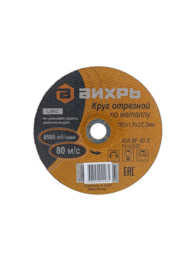Круг отрезной по металлу ВИХРЬ 180х1,6х22 мм в Вяземский