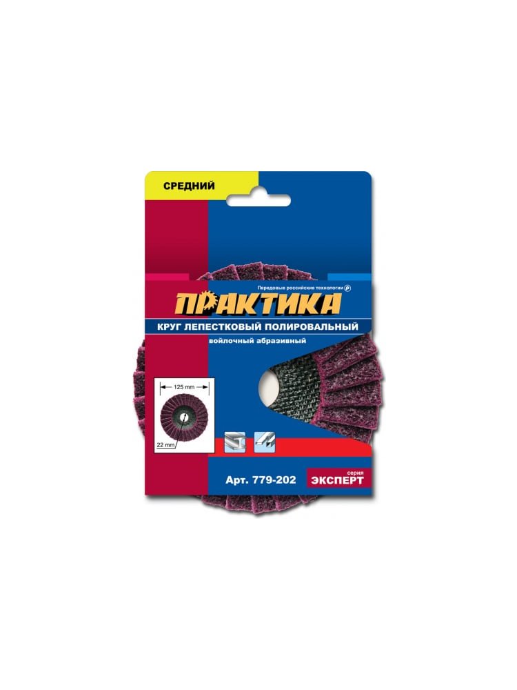 Круг лепестковый полировальный ПРАКТИКА 125*22 мм, средний, войлочный, абразивный
