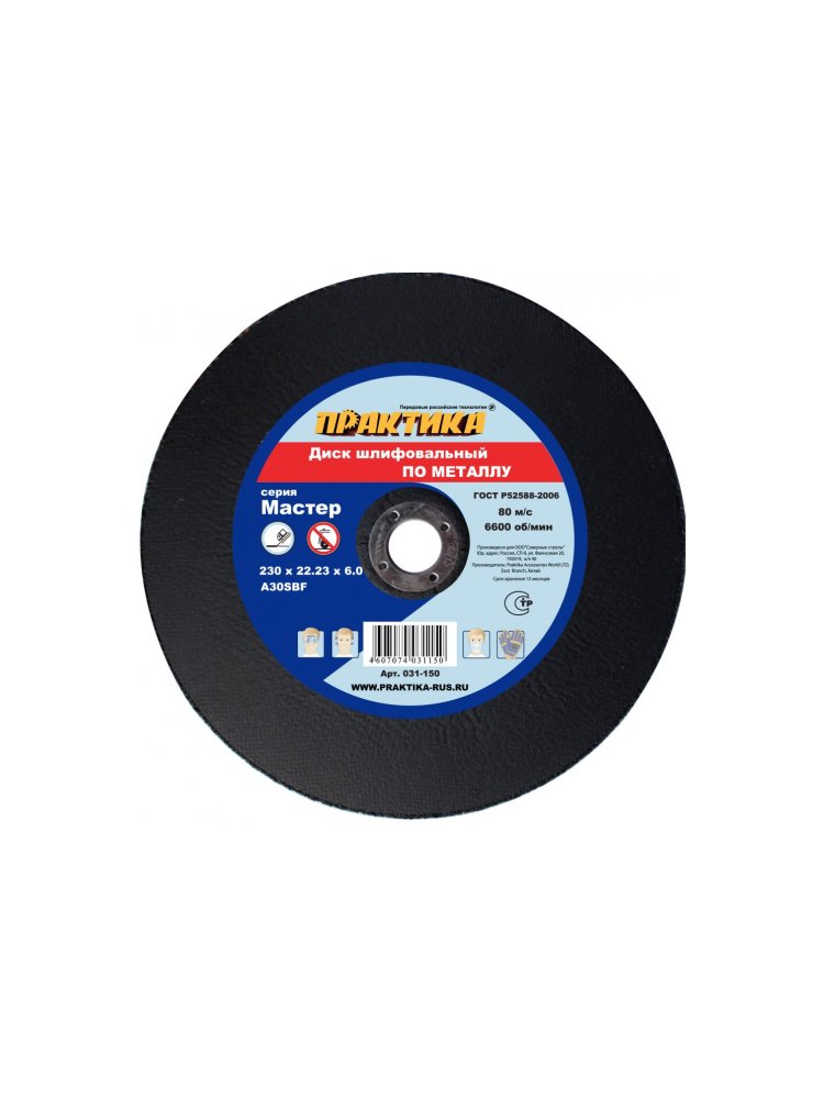 Шлифовальные диски по металлу на бакелитовой связке. Серия "Мастер" ГОСТ 21963-2002, ГОСТ Р 52588-2006. 80 м/с Эффективный круг для быстрой зачистки металла, диаметр 230 мм, толщина 6 мм, надёжный абразив для долговечной и безопасной работы.