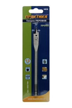 шестигранный хвостовик 1/4" Перовое сверло по дереву 12×152 мм — чистое сверление, высокая точность, долговечная сталь, шестигранный хвостовик для надежной фиксации.