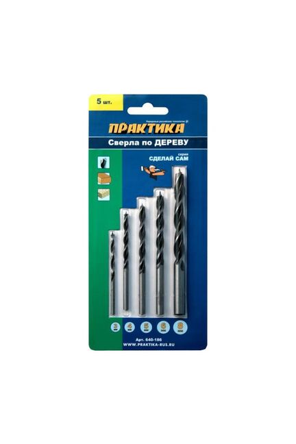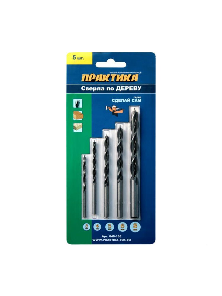 Набор сверл по дереву ПРАКТИКА "Сделай сам", 5 шт, 3,4,5,6,8 мм в Вяземский