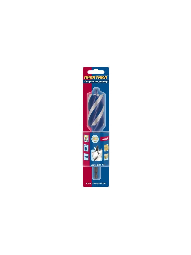 Сверло по дереву X-тип (30x165 мм; в блистере) ПРАКТИКА предназначено для сверления мягкой древесины и древесины средней твердости, ограниченно ДСП и гипсокартона. Изготовлено из высококачественной инструментальной стали У10. Четыре режущие кромки и четырехзаходная спираль обеспечивают высокую скорость сверления и аккуратные кромки отверстия. Резьбовое центрирующее острие обеспечивает самозатягивание сверла в материал, снижая усилия оператора. Шестигранный хвостовик 1/4’’ исключает проворачивание в кулачковом патроне и подходит для использования совместно с магнитным держателем 1/4’’. Профессиональное спиральное сверло 30×165 мм для точных и чистых отверстий по дереву. Прочное, долговечное, быстрое сверление без сколов.