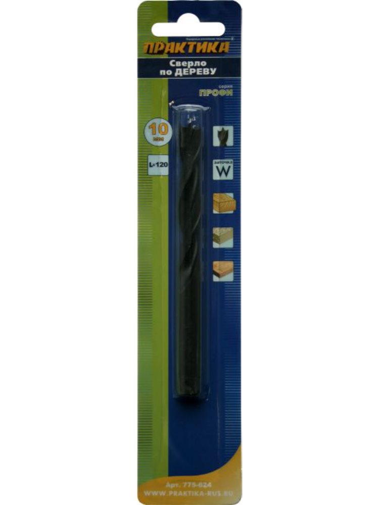 Сверло по дереву ПРАКТИКА спиральное 10*120мм