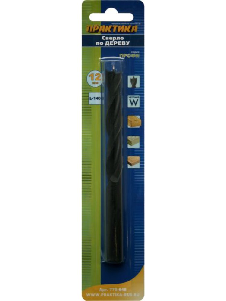 Сверло по дереву ПРАКТИКА спиральное 12*140мм