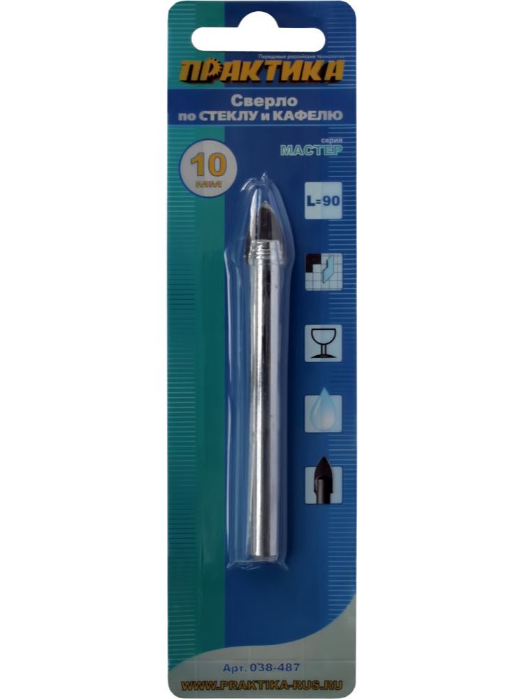 Сверло по стеклу ПРАКТИКА 10х90 мм "Мастер"