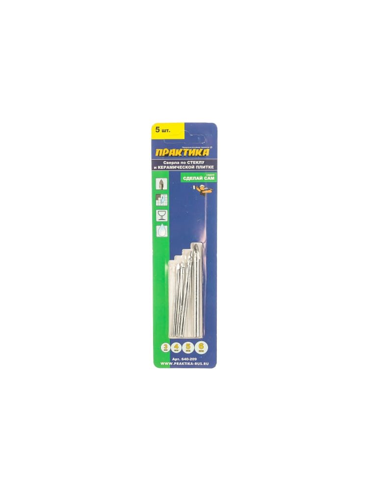 Идеальный выбор для аккуратного сверления в стекле, керамике и кафеле — набор из 4 сверл диаметрами 3, 4, 5 и 6 мм отлично подходит для бытовых и профессиональных работ при монтаже сантехники, укладке плитки или декоративных элементов.