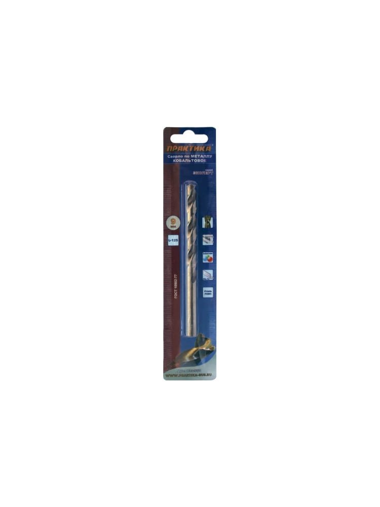 Сверло по металлу ПРАКТИКА кобальтовое 9,0х125 мм